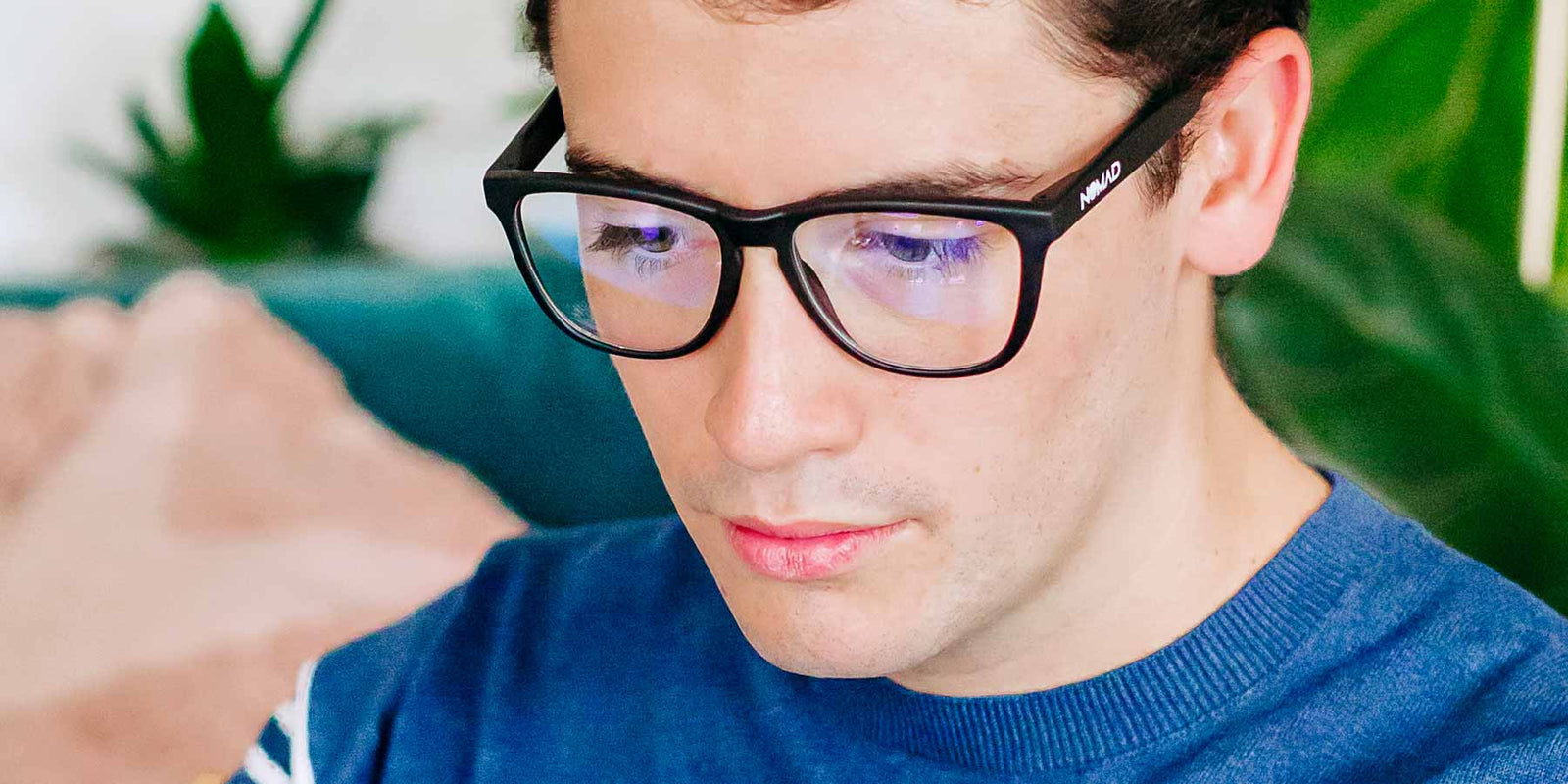 Nomad's Blue Light Blocking glasses prevent harmful blue light overexposure reaching your eyes. Keeping you feeling fresh, productive and allowing you to focus longer.