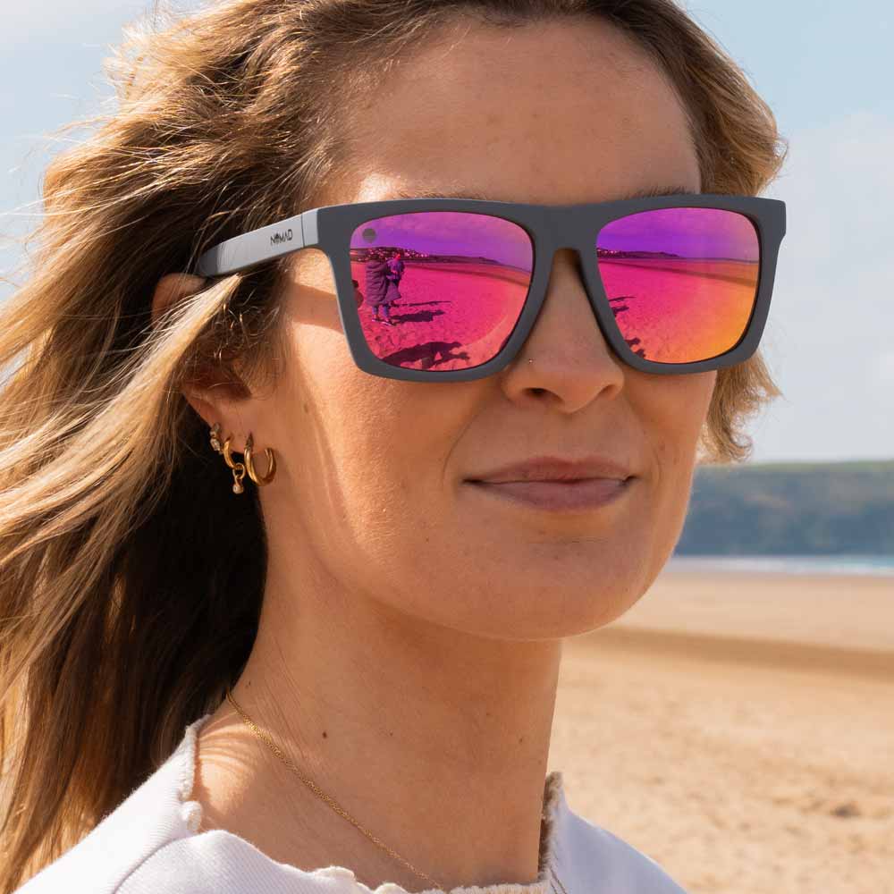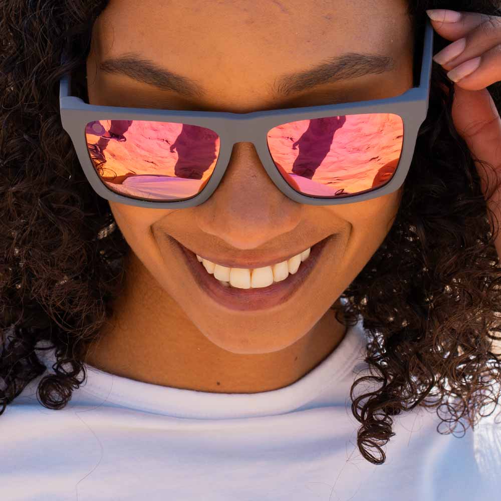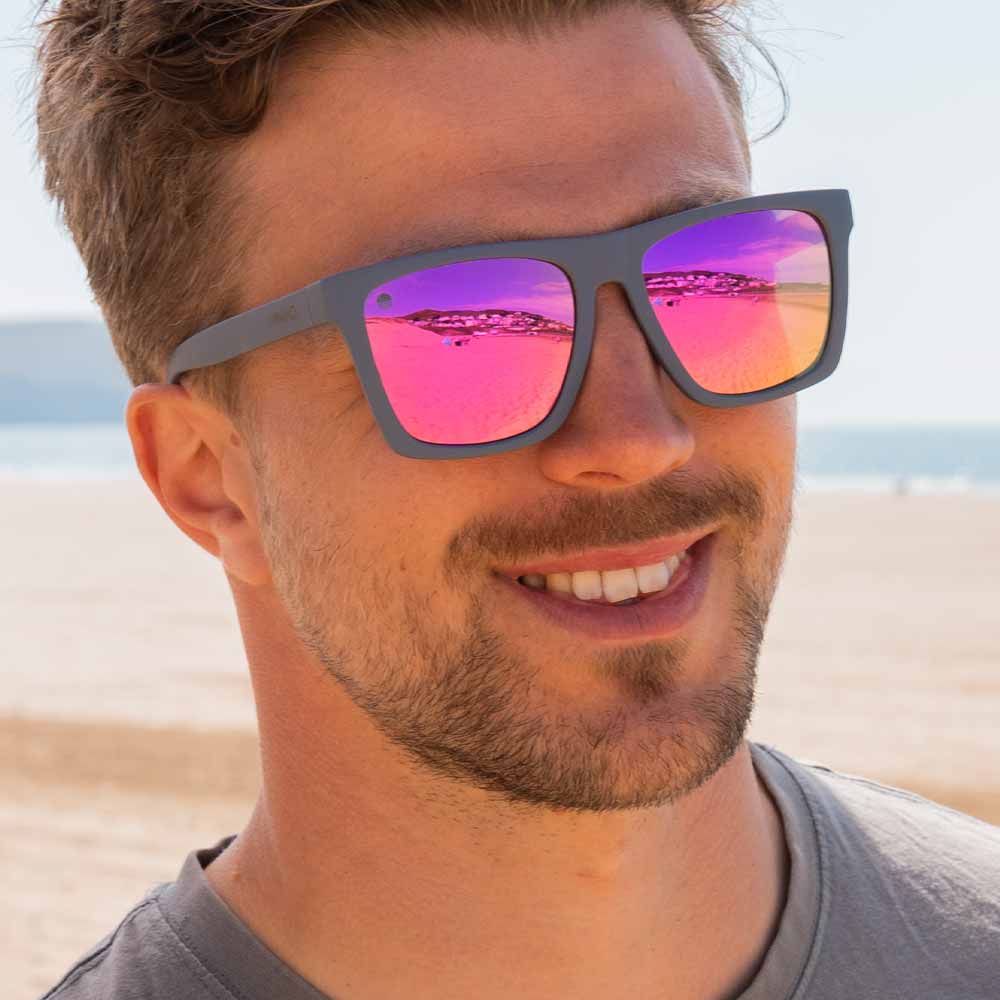 Featuring a matte grey frame that exudes urban chic and a bright pink lens that demands attention, these sunnies are not for the faint of heart. But here's the twist - they're not just about style, they're also champions of sustainability! Crafted from 100% recycled ocean plastic, you can rock these shades knowing you're making a positive impact on the environment. And with every pair sold, we're planting trees faster than you can say 'blooming beauty' - because who said saving the planet can't be edgy?