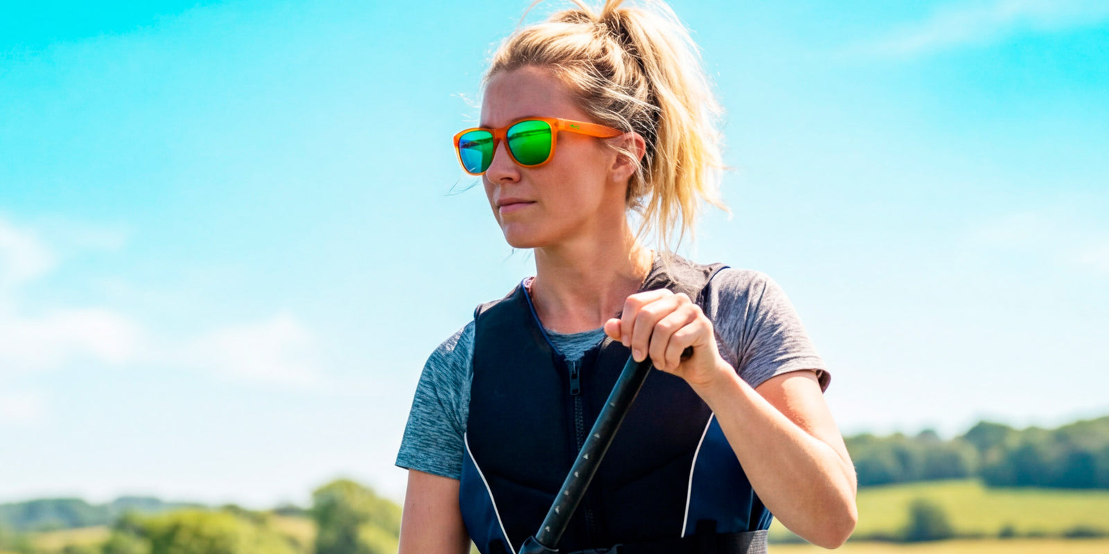Premium glare-reducing, polarised lenses that block 100% UVA/B rays.