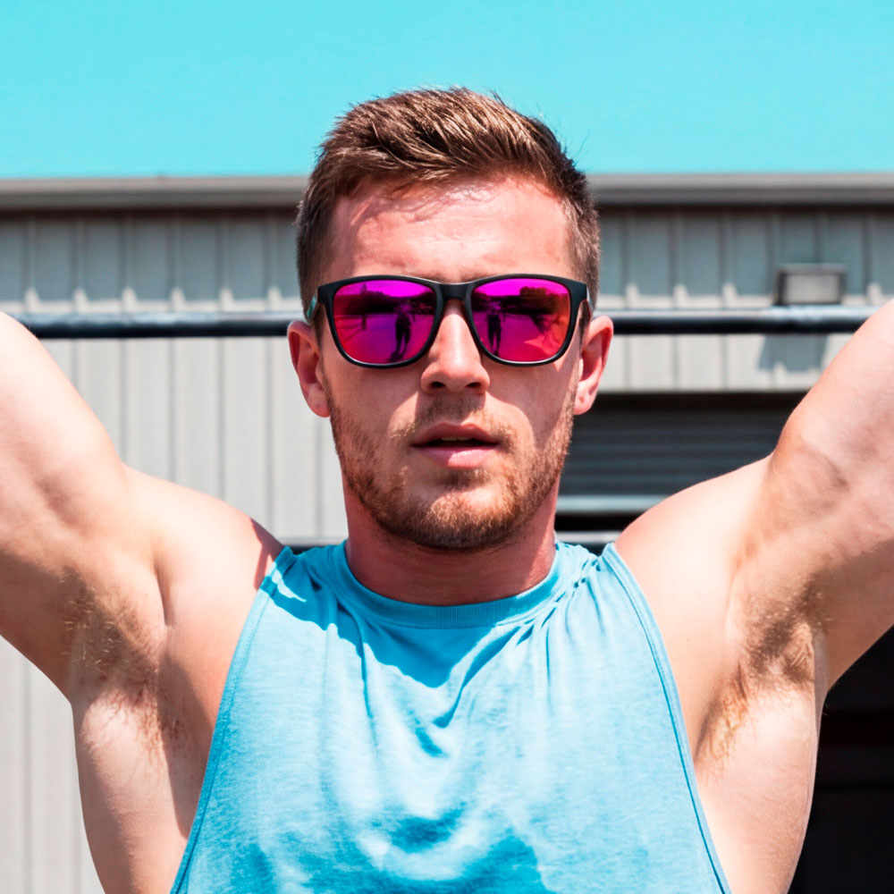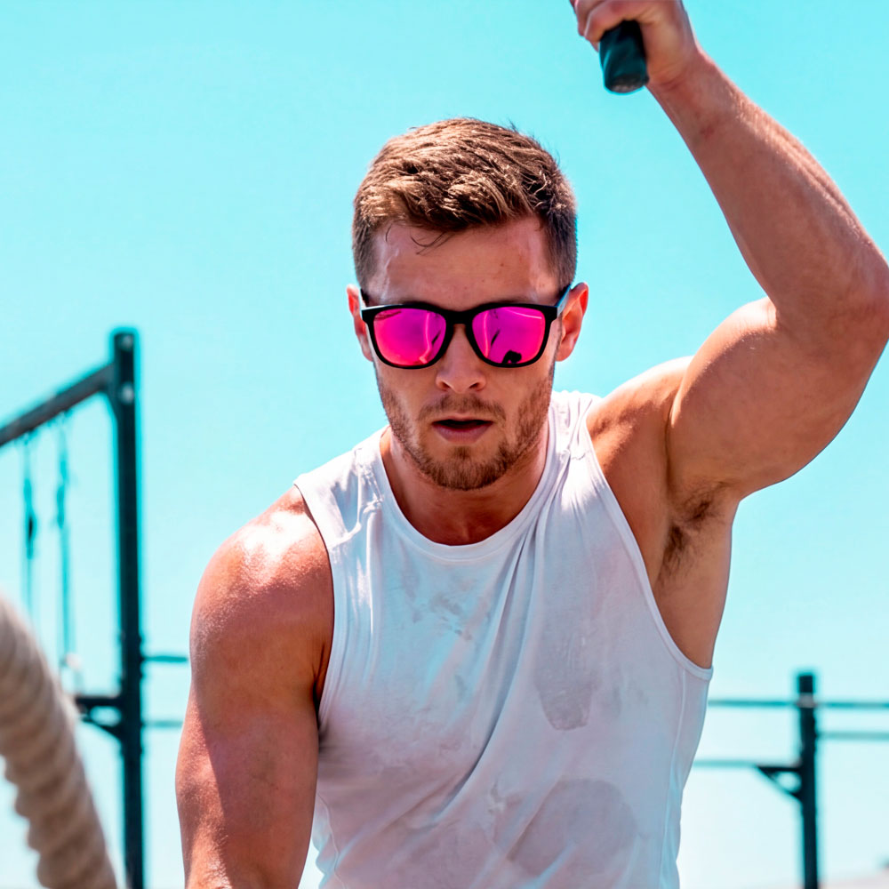 Black frame, bright pink lenses. The kind of sunglasses that walk into a room and immediately become the topic of conversation. Bold, unapologetic, and absolutely not blending in.