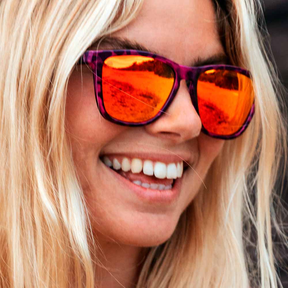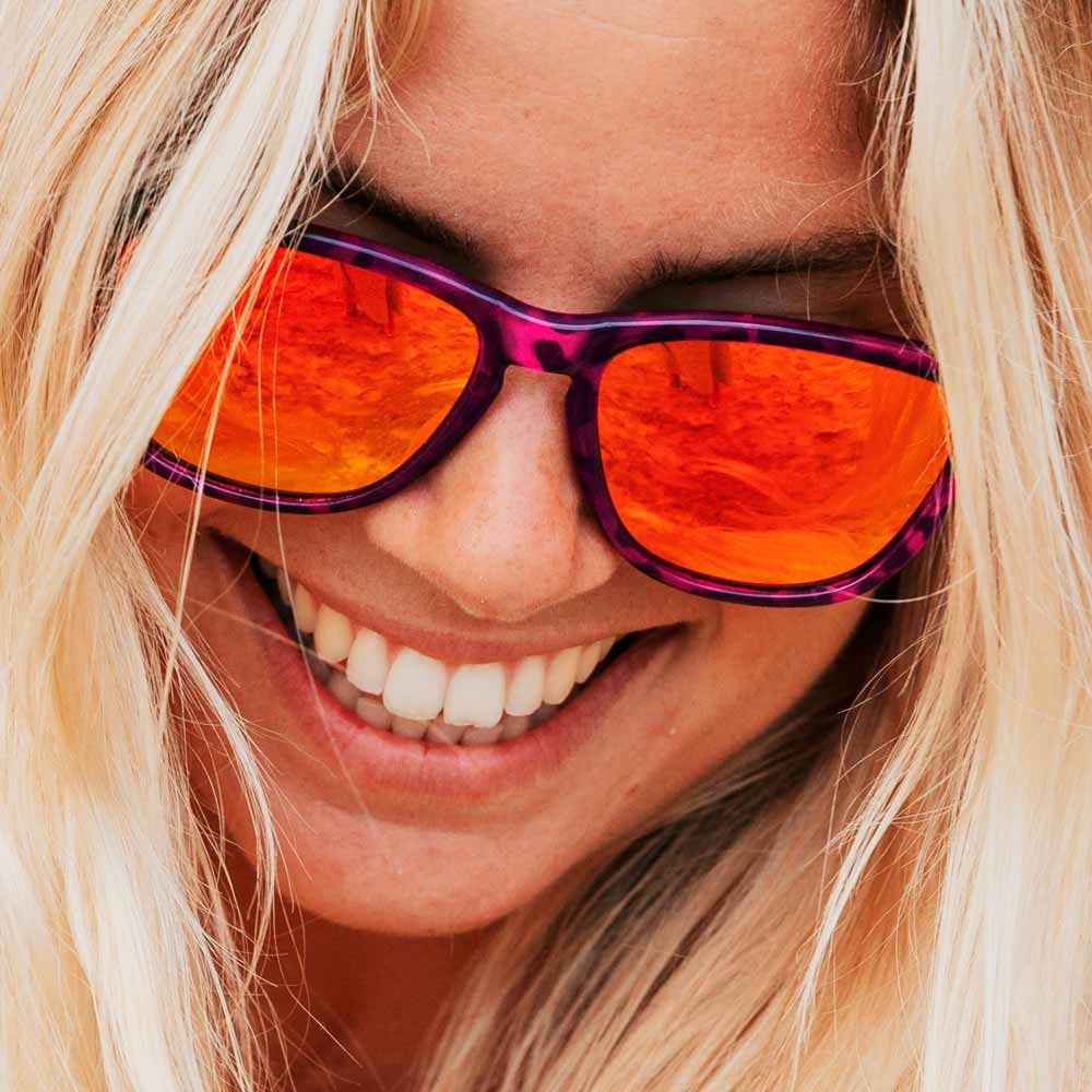 There is something alluring about this totally unique colourway - pink tortoiseshell frame encase bright orange polarised lenses.